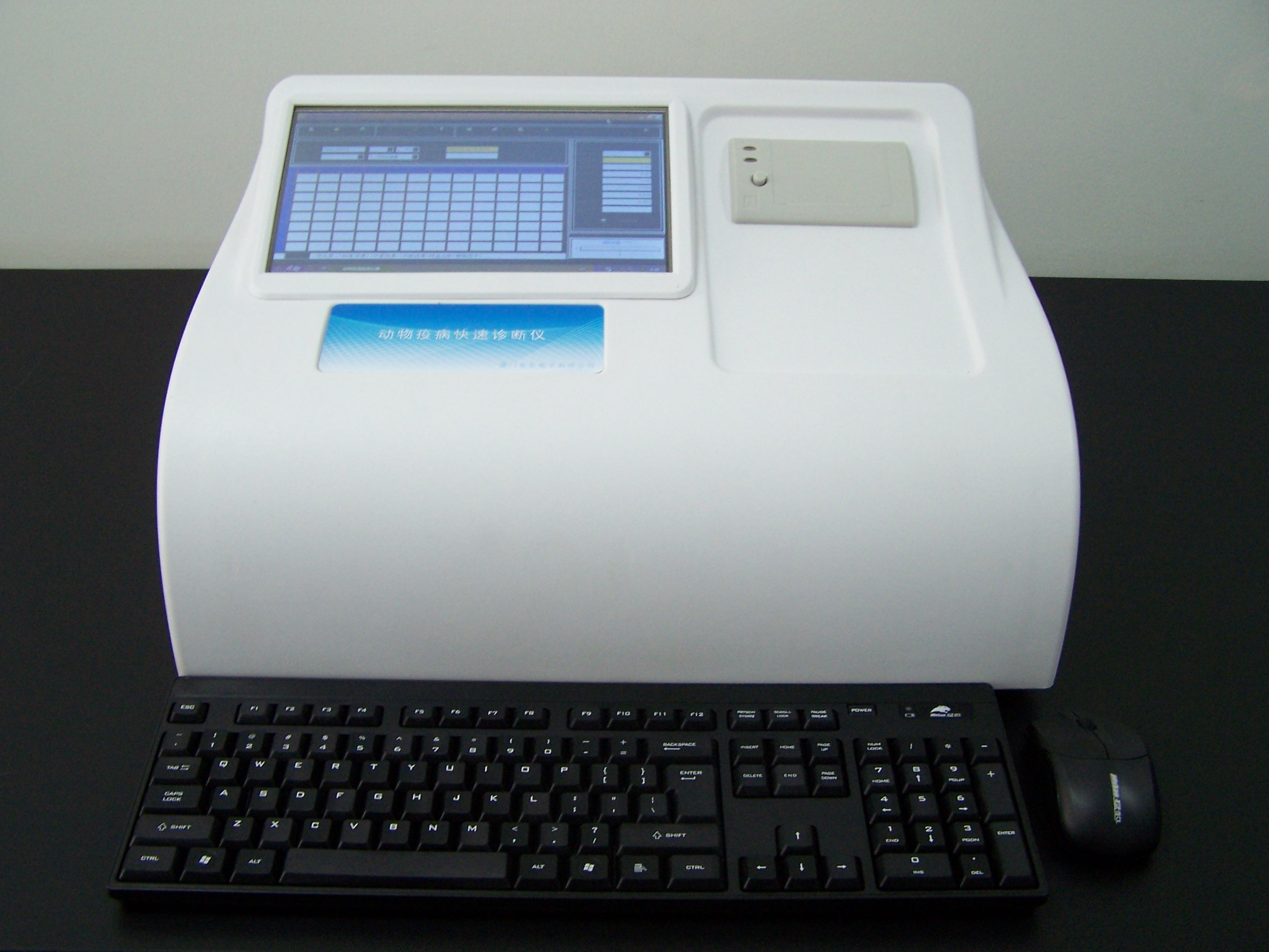 LU-637動物疫病快速診斷儀與相應(yīng)試劑配合可定性或定量檢測多種動物疫病,包括2008年《中華人民共和國動物防疫法》《一、二、三類動物疫病病種名錄》規(guī)定管理的動物疫病,一類 動物疫?。?7種)、二類 動物疫病(77種)、三類 動物疫?。?3種)如豬藍耳病毒、豬瘟病毒、豬偽狂犬病毒、豬偽狂犬病毒gE蛋白、豬圓環(huán)病毒、豬乙型腦炎病毒、豬口蹄疫3ABC蛋白、豬口蹄疫病毒IgG、豬細小病毒、禽流感、藍舌病、牛傳染性胸膜肺炎、牛瘟、綿羊痘和山羊痘等定量快速檢測,并且可以和疫病診斷分析系統(tǒng)聯(lián)網(wǎng)工作。