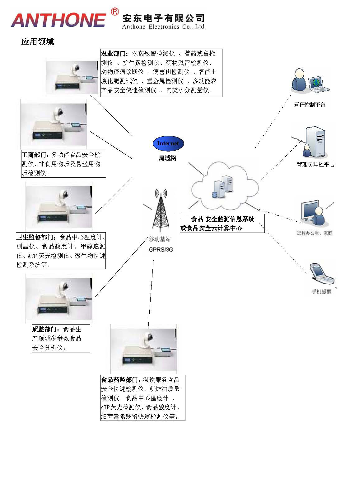 ANTHONE物聯(lián)食品安全裝置與系統(tǒng)原理: 通過物聯(lián)網技術,對食品的各項關鍵數(shù)據(jù)進行采集、存儲,實現(xiàn)數(shù)據(jù)分析和智能處理,形成完整的數(shù)據(jù)庫,可提供一致、高效的數(shù)據(jù)查詢、追溯機制。實現(xiàn)市場動態(tài)控制,食品安全動態(tài)控制,構建信息監(jiān)測和通報網絡體系。