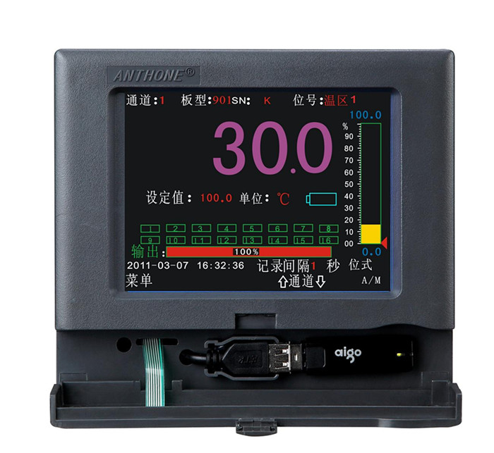 LU-C3000系列彩色液晶顯示過程控制無紙記錄儀,可以為一至八通道可編程PID控制,程序控制曲線多可達一百段的無紙記錄儀。儀表輸入為全切換萬能輸入,可輸入熱電偶、熱電阻、標(biāo)準(zhǔn)電流等信號,可提供饋電輸出。直接連接微型打印機、彩色噴墨打印機,可同時打印多條曲線,可打印用戶指定時間的實時歷史數(shù)據(jù)及曲線;通過RS232通訊接口與便攜計算機、掌上電腦(PDA)連接,直接讀取儀表歷史數(shù)據(jù),再傳給計算機,通過數(shù)據(jù)管理軟件,可對所取數(shù)據(jù)進行分析、存檔、打印、處理。通過RS485通訊接口,可與組態(tài)王、MCGS等專業(yè)組態(tài)軟件組成實時監(jiān)控系統(tǒng)。并采用現(xiàn)代USB接口技術(shù),直接將數(shù)據(jù)存儲于U盤,記錄時間更長。