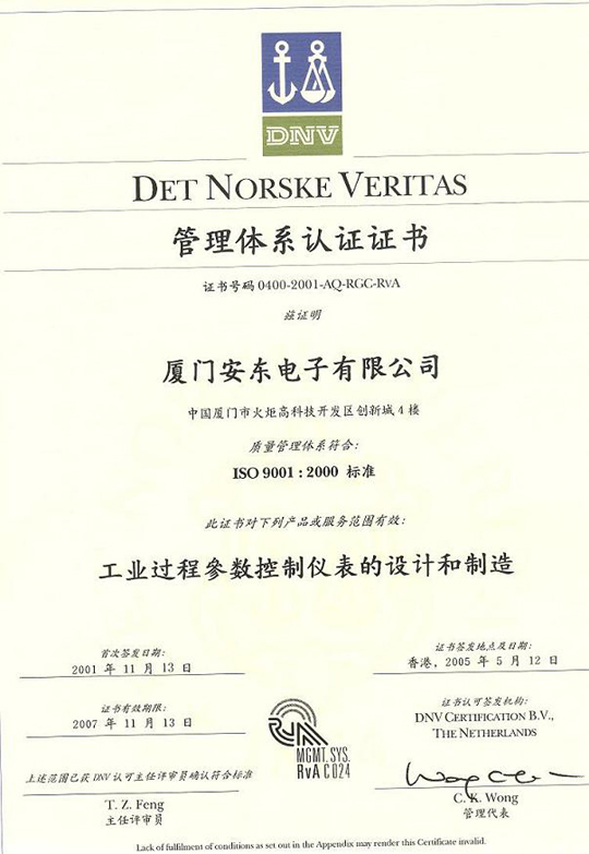 祝賀廈門(mén)安東電子再次通過(guò)挪威船級(jí)社(DNV)ISO9001國(guó)際質(zhì)量管理體系的換證