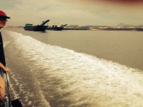 曾經(jīng)去過(guò)海邊,卻是第一次站在甲板上,吹海風(fēng),看那秋水共長(zhǎng)天一色。 大海的魅力真是無(wú)窮,站在甲板上,望著無(wú)邊的大海,心胸隨之開(kāi)闊,煩惱也隨之而去。真的到了海上,才明白,站在海邊瞭望的大海,遠(yuǎn)不如真正站在游艇的甲板上在海平面上疾馳來(lái)的快意、來(lái)的夢(mèng)幻。孕育了整個(gè)人類文明的海洋,以它的胸懷,收容了渺小的我心中那些渺小的煩惱,讓人不由得笑容浮上臉頰。這“秋水共長(zhǎng)天一色”作為小嶝島游的開(kāi)胃菜,不得不點(diǎn)32個(gè)贊,真是脾胃大開(kāi),充滿期待。