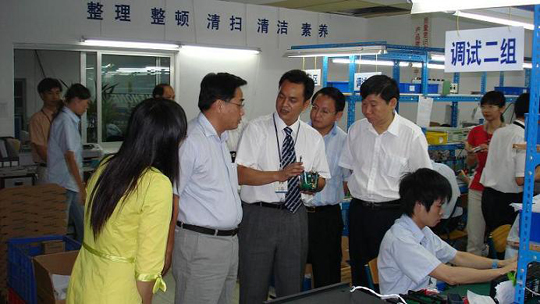 徐秘書(shū)長(zhǎng)及隨同人員首先參觀了公司各個(gè)部門(mén),重點(diǎn)視察了技術(shù)研究開(kāi)發(fā)中心,詳細(xì)詢問(wèn)了過(guò)程控制記錄儀、智能電力儀表等新產(chǎn)品的技術(shù)運(yùn)用與創(chuàng)新,深入車間了解自動(dòng)化智能儀表的生產(chǎn),并不時(shí)地與公司員工進(jìn)行親切交談,并詳細(xì)了解公司產(chǎn)品的應(yīng)用范圍和客戶分布。之后,安東電子總經(jīng)理肖國(guó)專針對(duì)公司的組建和發(fā)展歷程向徐秘書(shū)長(zhǎng)做了專題匯報(bào),并且介紹了公司的下一步發(fā)展規(guī)劃,徐秘書(shū)長(zhǎng)在認(rèn)真聽(tīng)取了公司的匯報(bào)后,對(duì)安東電子依靠自主創(chuàng)新、積極瞄準(zhǔn)國(guó)際先進(jìn)的自動(dòng)化儀器儀表水平、采取科學(xué)的經(jīng)營(yíng)管理方法不斷發(fā)展壯大所取得的成績(jī)表示肯定,并希望企業(yè)根據(jù)當(dāng)前我市提出建設(shè)“科學(xué)技術(shù)創(chuàng)新型城市”的目標(biāo),在市政府"三加一"(軟件、光電子、生物化學(xué)加上儀器儀表)的科技產(chǎn)業(yè)布局的歷史機(jī)遇中,再接再厲不斷開(kāi)展自主創(chuàng)新活動(dòng),開(kāi)發(fā)出更多擁有自主知識(shí)產(chǎn)權(quán)的產(chǎn)品,在提高產(chǎn)品市場(chǎng)競(jìng)爭(zhēng)力的同時(shí)取得更大的發(fā)展。并鼓勵(lì)安東電子繼續(xù)加大國(guó)際市場(chǎng)的運(yùn)作。