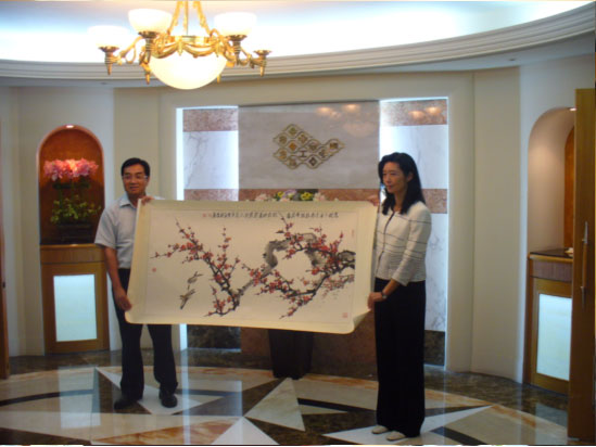 20日,結(jié)束臺塑參訪,秘書長徐模代表參訪團(tuán)向王永慶大女兒臺塑關(guān)系企業(yè)行政中心副總裁王瑞華贈禮